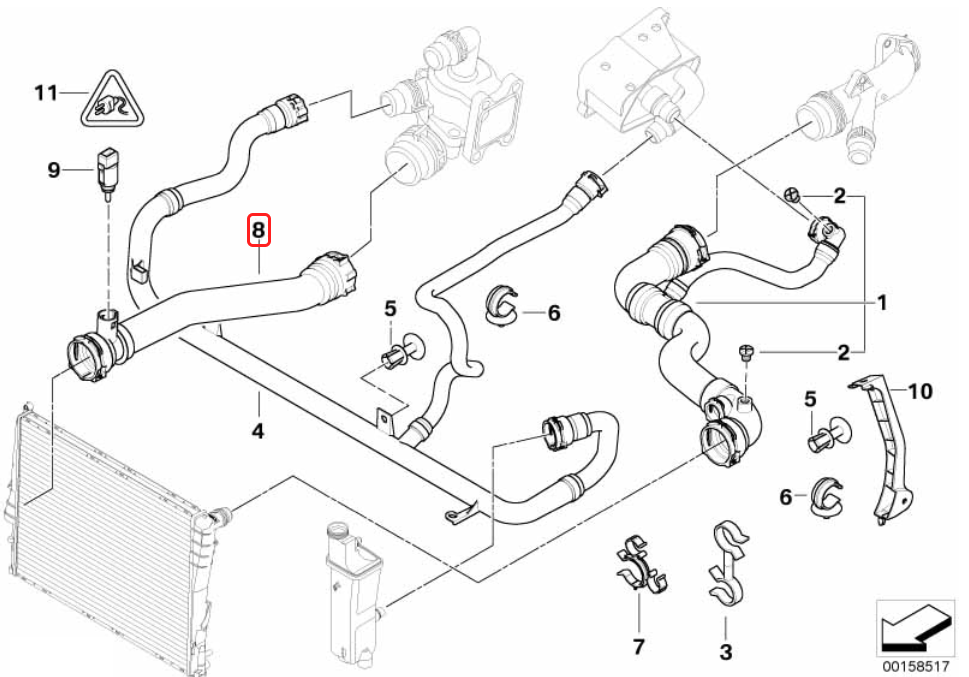 Pozycja: Dół, od Chłodnicy do Termostatu. Zimna strona. Data produkcji od 09/2001.