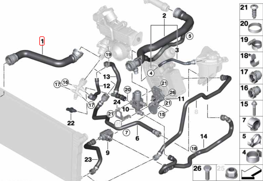 Pozycja: Od chłodnicy do termostatu. Zimna strona.