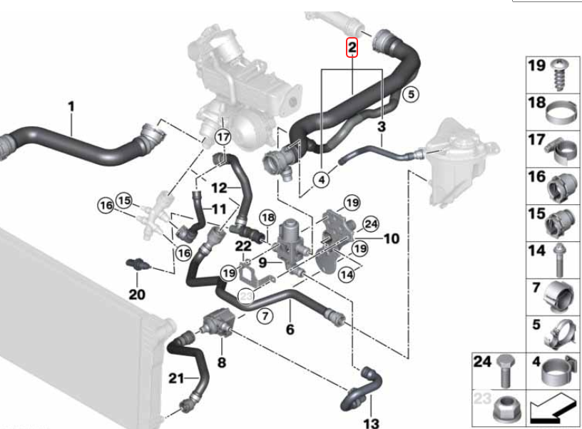 Pozycja: Od króćca do chłodnicy. Ciepła strona.