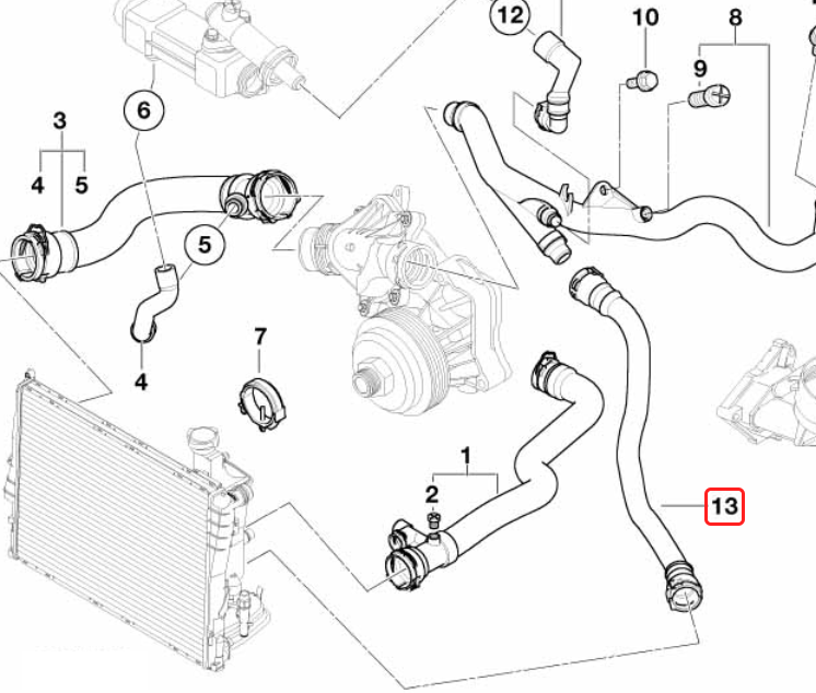 Numer 13 na schemacie. Od rurki Termostatu do Zbiorniczka wyrównawczego.