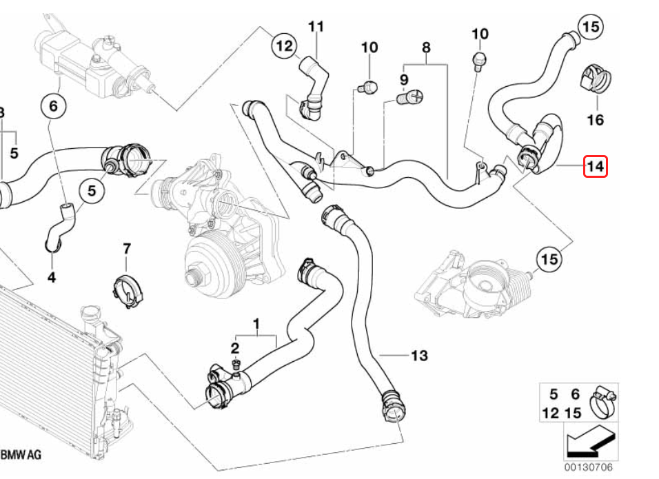Numer 14 na schemacie. Od rurki termostatu do chłodniczki oleju